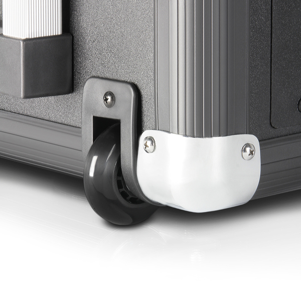 Dank der integrierten Rollen und des ausziehbaren Griffs für einen einfachen Transport überzeugt das aktive 2-Wege-System LDRJ10 als mobile Soundstation. Der integrierte Akku ermöglicht bis zu 20 Stunden Dauerbetrieb, der Frequenzbereich liegt bei 90 Hz - 18 kHz und die Leistung (Peak) bei 100 Watt.