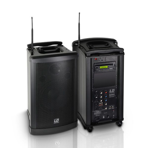 Der Roadman 102 ist eine portable und mobile Beschallungslösung mit integriertem Akku. Das System eignet sich perfekt für alle Solo Entertainer, Kirchen, Schulen, Konferenzen oder Präsentationen bei denen es auf Vielseitigkeit ankommt. Zur Standardaustattung des Roadman gehört ein CD/MP3/USB/SD Player sowie eine Wireless Mikrofon Einheit. Optional können ein Kassettenrekorder und eine zweite Wireless Einheit eingebaut werden.
